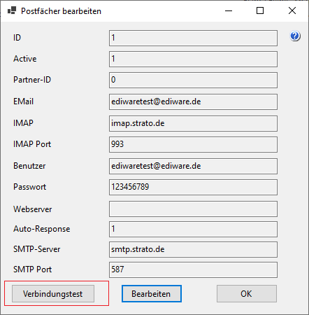 Starten Sie die Software ddimail BASICS und erfassen Sie unter "Konfiguration-Postfach bearbeiten" die Parameter Ihres E-Mail-Postfachs.